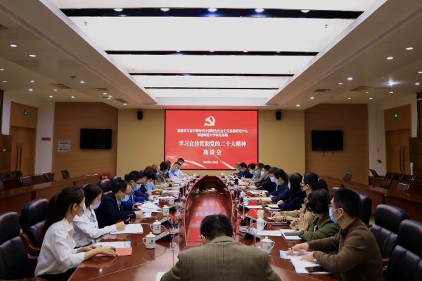 11月4日,福建省习近平新时代中国特色社会主义思想研究中心九游平台研究基地学习宣传贯彻党的二十大精神座谈会在旗山校区行政楼第十会议室举行。校党委书记、研究基地主任潘玉腾,校党委副书记、研究基地常务副主任陈晓红,研究基地成员、研究团队主要负责人以及专家学者、校党委讲师团成员、师生代表参加会议。座谈会由陈晓红主持。