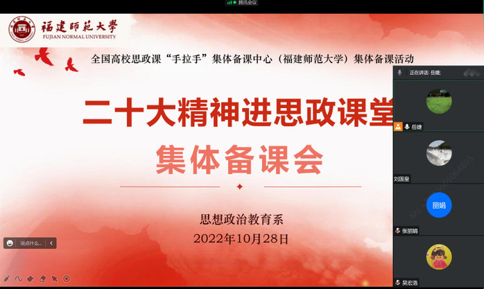 思想品德修养与法律基础教研部召开了“推进二十大精神进课堂”线上备课会。老师们表示,二十大报告明确了当前和今后一个时期全党全国的首要政治任务,思政课教师要全面、系统、完整、准确领会党的二十大精神,向学生全面阐释党的二十大报告的内涵和历史性意义,同时聚焦“两个确立”“里程碑意义”“中国式现代化”等关键词,对党的二十大精神进行深入解读,把二十大精神讲活、讲透、讲通俗,提高课堂亲和力。