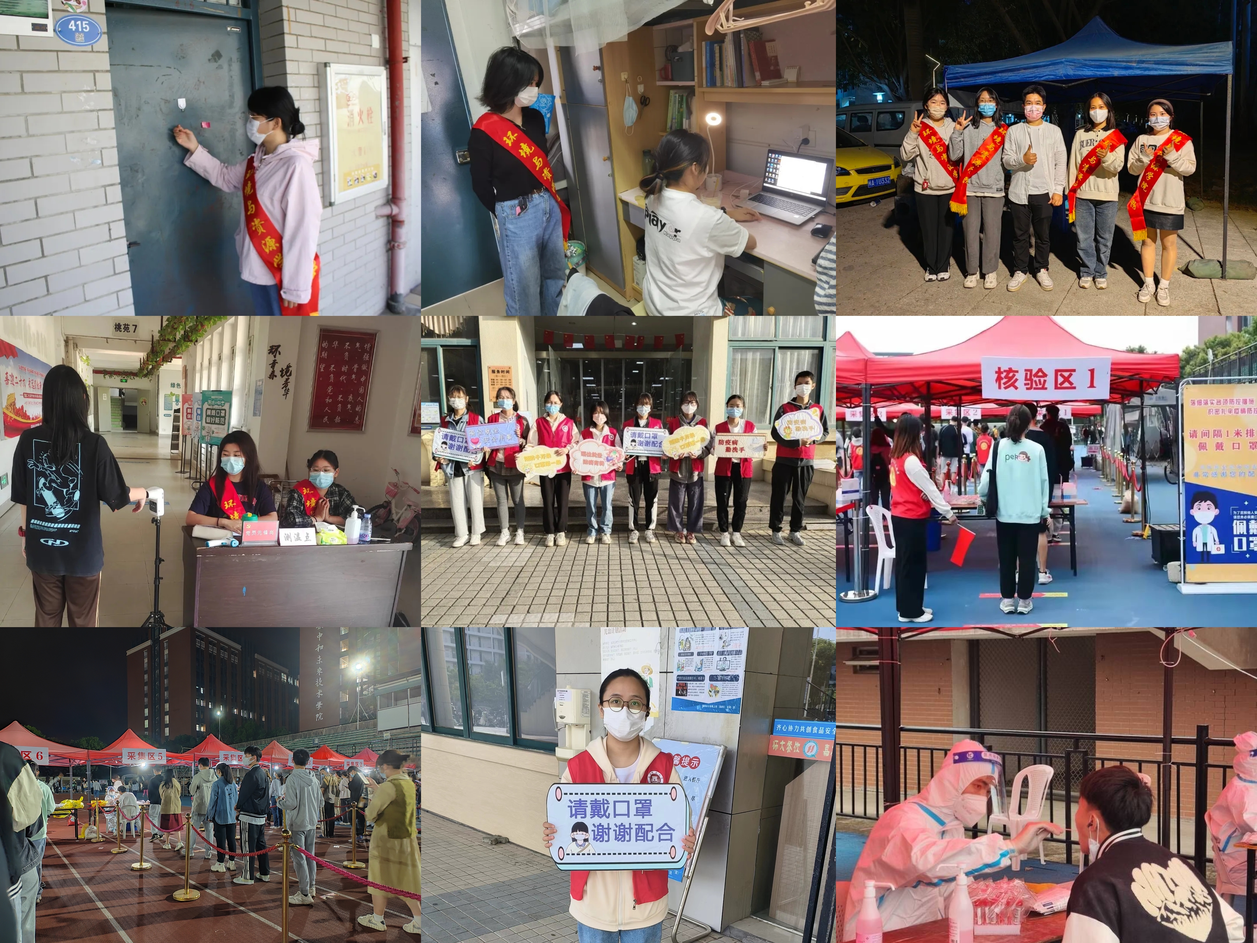 疫情之下,学院学子用实际行动织实“服务网”。各学生党支部成立学习督导小组,提醒监督学生按时进行线上学习;年级两委和班委积极行动,及时跟进全员核酸检测、晨午检等情况。同时,学生积极参与宿舍测温、食堂督导、外卖引导、核检现场秩序维护等志愿活动,引导同学不点外卖、主动测温、佩戴口罩、有序进行核酸检测,用行动为疫情防控贡献自己的一份力。