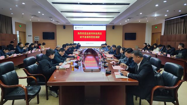 221日,武平县委副书记李小飞、龙岩市科技局副局长王琳,县工信科技局负责同志以及13家新型显示企业代表,莅校开展技术需求对接。校产教融合发展中心主任黄宁、光电与信息工程学院院长张先增、化学与材料学院院长项生昌,人事处负责人以及相关学院教师代表参加了对接会。会议由产教融合发展中心副主任谢德胜主持。