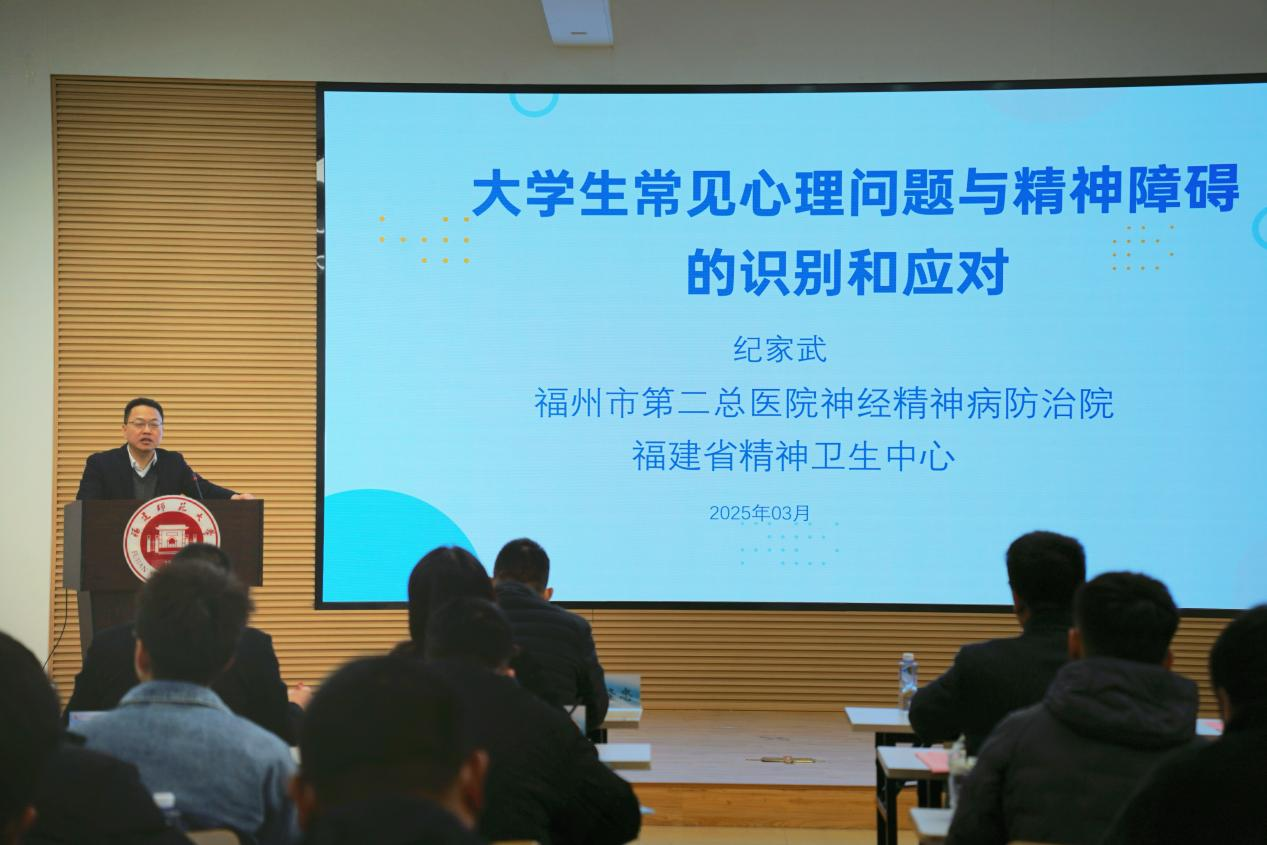 启动仪式上,副校长吴剑锋与福州市第二总医院神经精神病防治院院长纪家武共同为“心理服务合作单位”揭牌。吴剑锋在致辞中充分肯定了九游平台(中国)心理健康教育工作取得的成效,强调各学院要以更高的站位、务实的举措、高效的协同,深刻认识心理健康教育的重要意义,着力提升心理健康教育精细化水平,不断促进心理健康教育提质增效。