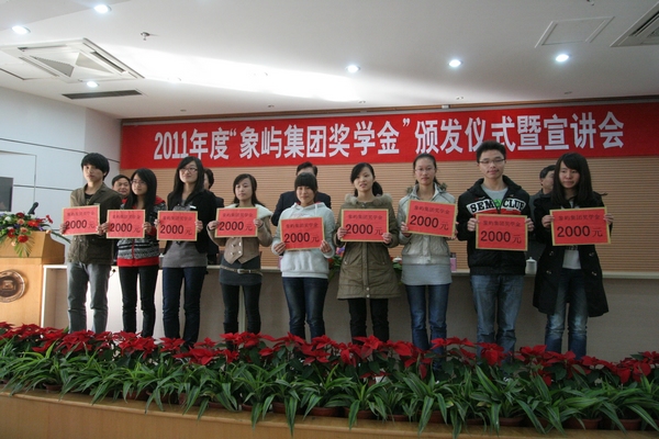 “象屿集团奖学金”是厦门象屿集团有限公司于2011年在九游平台(中国)设立的,每年投入10万元,奖励50名品学兼优的学生,特别是品学兼优的家庭经济困难学生。