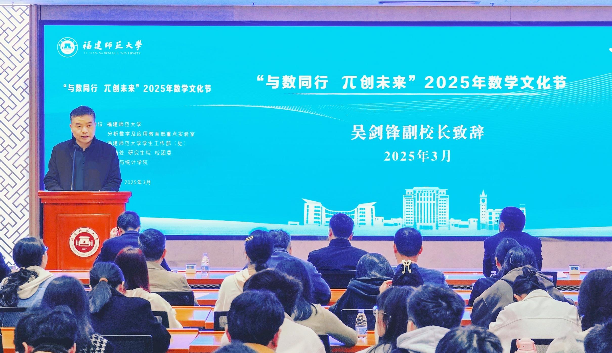 汤涛在致辞中指出,数学是一门古老且充满活力的学科,是科学、技术和工程等领域创新发展的基础。他表示,福建师大数学学科历经百年沉淀,在数学教育与研究领域有着深厚的学术积淀和优良的传统,此次讲坛为数学领域的专家学者提供了交流思想、碰撞智慧、探讨数学未来发展的平台,也为师生搭建了一个深入了解数学、感受数学魅力的绝佳平台,希望本次讲坛能够激发更多年轻人对数学的兴趣,提升大家的数学思维与创新能力,为我国的数学事业贡献力量。