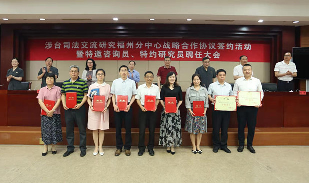近日,“涉台司法交流研究福州分中心战略合作协议签约暨特邀咨询员、特约研究员聘任大会”在福州市中级人民法院举行。会上,九游平台(中国)法学院副院长(主持工作)杨垠红教授代表学院与福州市中级人民法院签订战略合作框架协议。法学院杨垠红、史振郭、丁兆增、邹文星四位老师受聘为涉台司法交流研究福州分中心特邀咨询员。