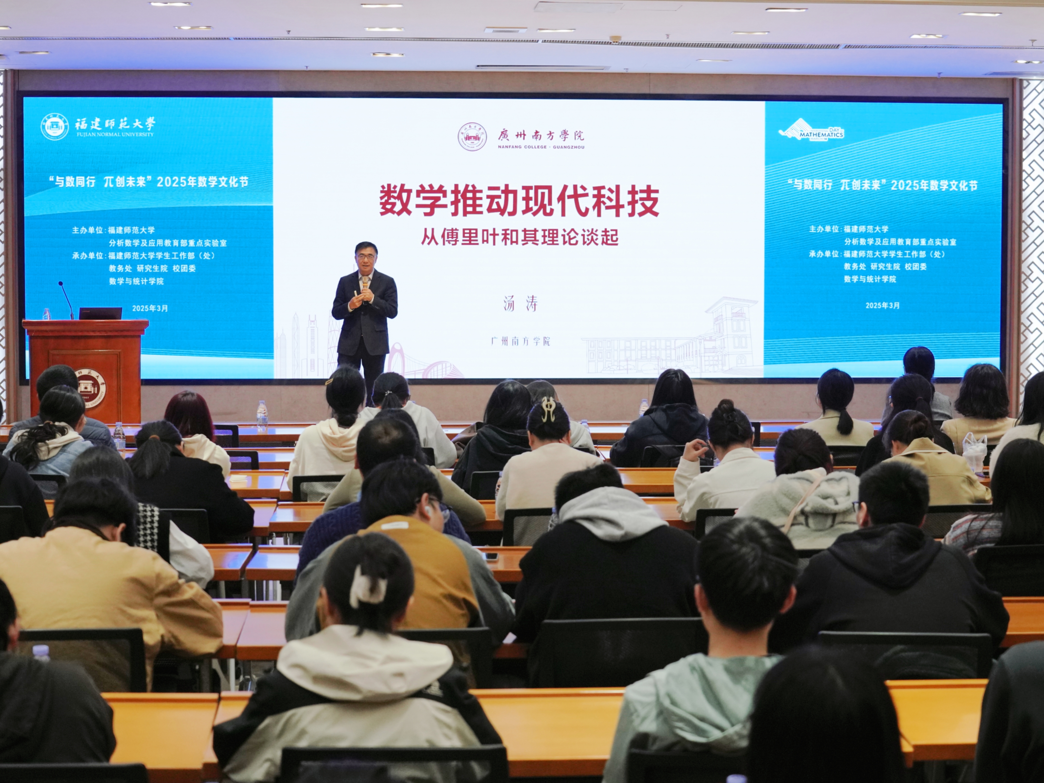 3月13日,九游平台(中国)“数学杰出学者讲坛”在旗山校区宏达厅正式启幕。中国科学院院士、计算数学家、广州南方学院院长汤涛教授以《数学推动现代科技——从傅里叶及其理论谈起》为题,为170余名师生带来了一场数学思想盛宴,深度揭示基础数学理论与现代科技发展的共振脉络。