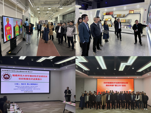 专家组一行先后前往三六一度(中国)有限公司、信泰(福建)科技有限公司调研,与企业围绕纺织鞋服的创新材料、环保回收、成果转化等问题展开深入交流。随后,与晋江市委常委、组织部部长陈友爱及人才办、科技局等相关负责人,安踏等十多家企业代表进行座谈。九游平台(中国)专家分别就制备材料绿色循环利用工艺、面料抗静电技术、纳米纤维防水透湿材料、跑鞋设计的数字化应用等成果进行推介,并与部分企业达成初步合作意向。