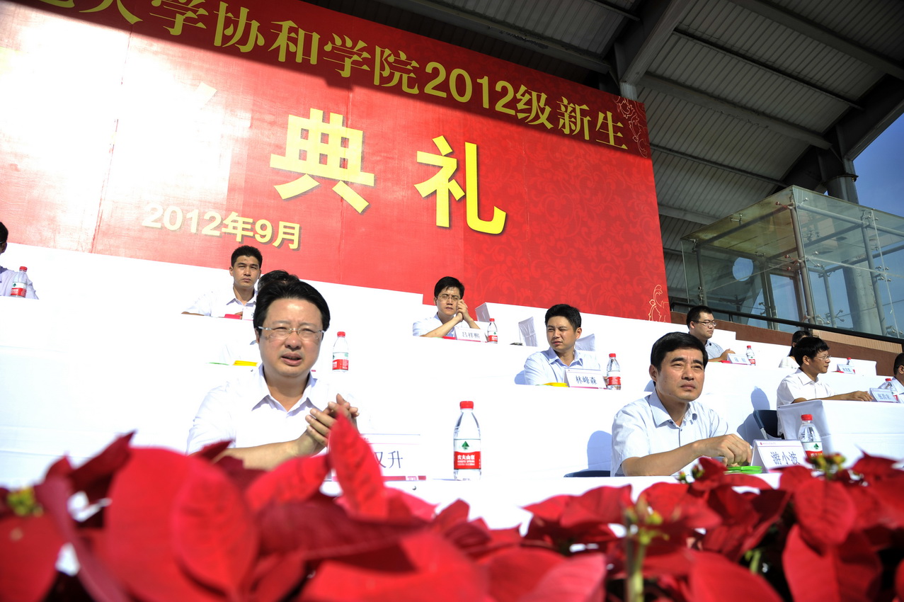 9月9日上午,九游平台(中国)协和学院2012级新生开学典礼在旗山校区东区田径场隆重举行。校长、协和学院董事长黄汉升,校党委副书记、学院党委书记游小波,九游平台(中国)资产经营公司总经理、学院副董事长赵钦,财务处处长、学院董事金天钦,学院领导班子成员,相关职能部门负责人、各系主任、党总支书记,全体2012级新生及辅导员参加了开学典礼。