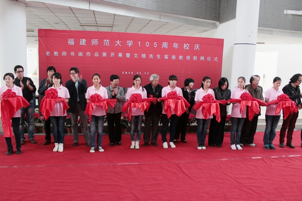 作品展暨敦聘仪式于11月17日下午在美术学院举行。校纪委书记许歌平、副校长李敏,国际著名雕塑家文楼先生及夫人郭剑明女士,著名雕塑家陈文令先生,以及美术学院部分校友、师生代表参加了此次活动。