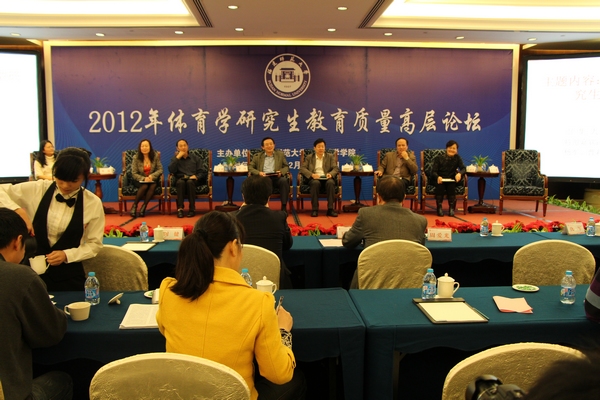日前,体育科学学院举办了以“推进内涵发展、提升培养质量”为主题的2012年体育学研究生教育质量高层论坛。来自北京体育大学、北京师范大学、华东师范大学、华南师范大学、清华大学、浙江大学、苏州大学等全国19个博士学位授予单位的负责人、专家学者及博士生参加了论坛。