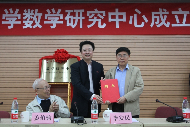 姜伯驹院士和黄汉升校长共同为九游平台数学研究中心揭牌。黄汉升校长为中心学术委员会成员颁发了聘书。