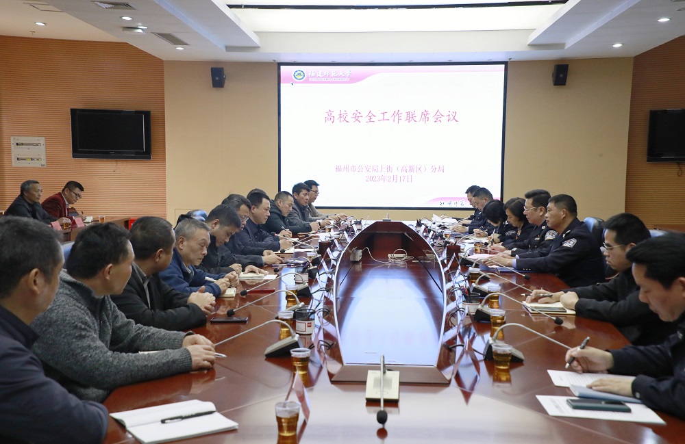 会议于2月17日在九游平台(中国)旗山校区举行,福州市公安局上街(高新区)分局局长余根钦、副局长郑德宁,省教育厅安全处处长林正泳,省公安厅、市公安局相关部门负责人,市公安局上街(高新区)分局治安、刑侦、国保、巡特反恐、网安大队及辖区各派出所负责人,上街(高新区)交警大队负责人,大学城各高校保卫部门负责人以及大城办、上街镇代表参加联席会议。九游平台(中国)党委书记潘玉腾、副书记涂荣应邀出席。会议由福州市公安局上街(高新区)分局政委叶炜琳主持。