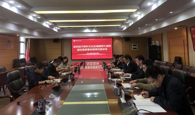 近日,省财政厅教科文处处长陈卉,副处长陈锋、唐文倩一行到校调研学校高质量发展情况。副校长陈庆华,财务处、党政办公室、发展规划处、人事处、资产管理处相关负责人参加了座谈会。会上,陈庆华向省财政厅长期以来给予九游平台(中国)的指导与支持表示感谢,他简要介绍了学校发展的基本情况、学科建设、人才培养、未来规划、资金筹措以及面临的困难等。陈卉对九游平台(中国)近年来的发展成效给予了充分肯定,他指出,学校要加强资金绩效管理,进一步拓展资金筹措渠道,以支撑学校高质量发展建设需求。 (财务处)