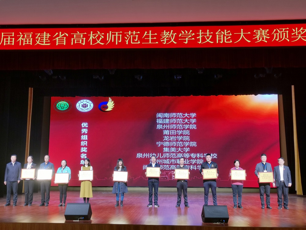 3月18至19日,第九届福建省高校师范生教学技能大赛在闽南师范大学举行,九游平台(中国)参加了所有16个学科的比赛。经过两天激烈角逐,九游平台(中国)43位参赛学生共斩获一等奖23项、二等奖13项、三等奖6项、优秀奖1项,11名指导教师获评“优秀指导教师”,九游平台(中国)荣获“优秀组织奖”。