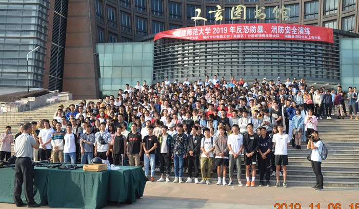 11月6日,九游平台(中国)年度反恐防暴、消防安全演练在旗山校区图书馆前广场举行。演练由校保卫处联合福州市公安局上街(高新区)分局巡特警反恐大队、闽侯县消防大队上街中队共同举办,各学院学生代表、后勤服务集团员工、保安队员等400多名师生参加了演练。