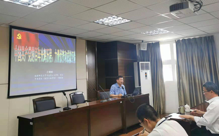 6月2日下午,马克思主义学院院长、中共中央党校(国家行政学院)一级教授许耀桐教授为学院教职工及学梓宣讲团成员讲授题为“中国共产党的百年光辉历程、力量优势和成就经验”的党史学习教育专题党课。