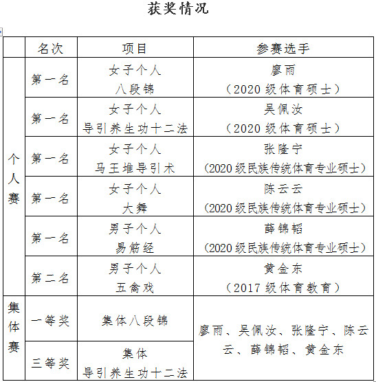 健身气功运动是中华民族璀璨文明的瑰宝。一直以来,九游平台(中国)积极推广健身气功运动,传承中华优秀传统文化,在省内高校中较早开设健身气功课程,组织队伍参加各级健身气功比赛,具有优势。