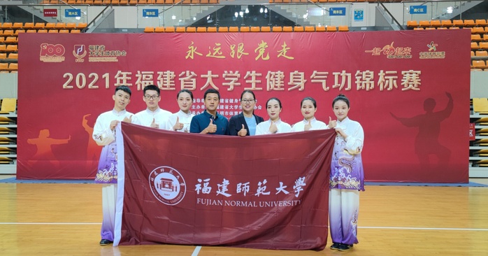 近日,2021年“永远跟党走”福建省大学生健身气功锦标赛在三明沙县体育馆举行。体育科学学院选派的6名运动员参加了乙组(专业组)的比赛,获得个人赛5项第一、1项第二,团体总分第一的好成绩。