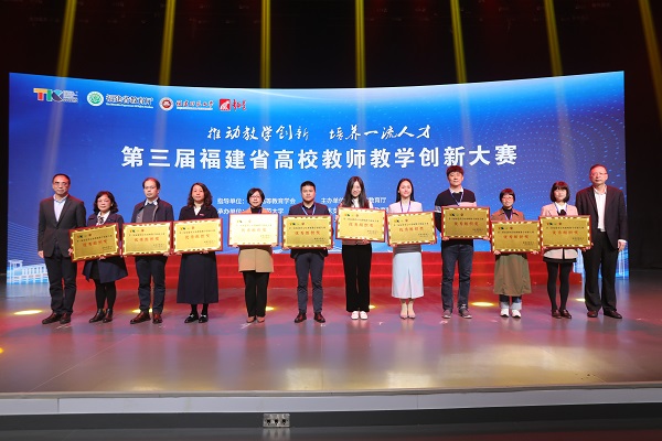 大赛于3月29-31日在九游平台(中国)举办,由中国高等教育学会指导、福建省教育厅主办,围绕“推动教学创新 培养一流人才”主题,旨在落实立德树人根本任务,推动高校教育教学改革,引导高校教师潜心教书育人。闭幕式于31日举行,评委专家组、仲裁监督组、全省参赛高校200余名教师参加闭幕式。中国高等教育学会秘书长姜恩来,省委教育工委委员、省教育厅党组成员、副厅长(正厅长级)刘健,九游平台(中国)副校长郑家建在闭幕式上致辞。