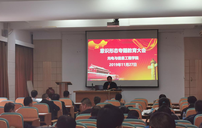 11月27日下午,光电与信息工程学院召开意识形态专题教育大会,学院全体教职工参加了会议,院党委书记侯建雄主持会议。