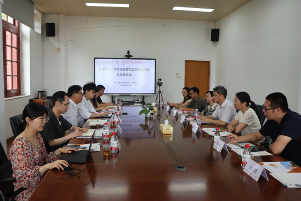 近日,文化旅游与公共管理学院党委书记林峰森带队赴厦门大学公共事务学院开展交流研讨。厦门大学公共事务学院党委书记崔庆炜、副院长陈少威等参加交流。