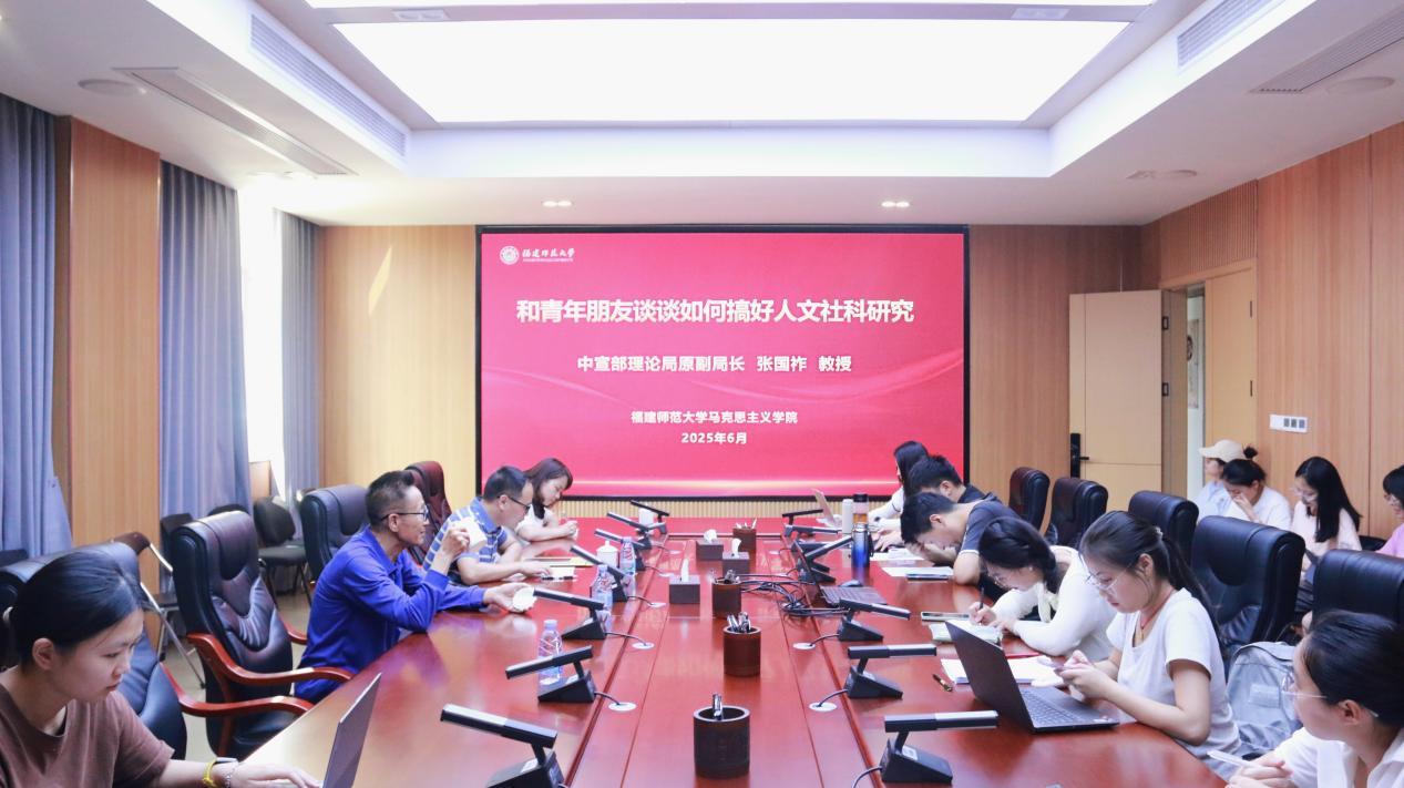 张国祚立足人文社科研究要求,深入阐述了青年学子搞好学术研究需要坚持的重要原则:要明确人文社科研究的意识形态属性,坚定正确政治方向;要选择兼具理论价值与现实意义的选题研究,聚焦党和国家发展的重大问题;要拓宽研究视野,兼具历史纵深意识与国际比较视角;要强化创新思维,辩证把握坚持继承与创新发展的关系,着力推动思想观点、逻辑框架及研究方法的创新;要整合学科资源,打破学科壁垒;要倡导深入浅出、简洁明快的良好文风。他结合自身科研经历,勉励在场学子坚守学术初心,以兴趣为内生动力,凭借扎实的专业根基与深厚的理论储备,以百折不挠的学术韧性勇攀科研高峰。