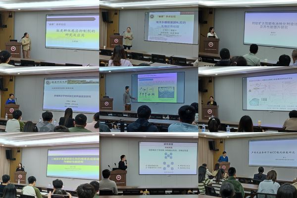 参与教师围绕“金属有机框架材料孔工程与气体吸附分离”“光电不对称催化CH官能团化”“液相化学组装富勒烯材料及其光伏电池研究”等不同的学术主题展开分享,涵盖了框架材料、催化性能理论研究、光伏电池等多个学科领域,展现了学院青年教师扎实的学术功底和良好的科研风貌。