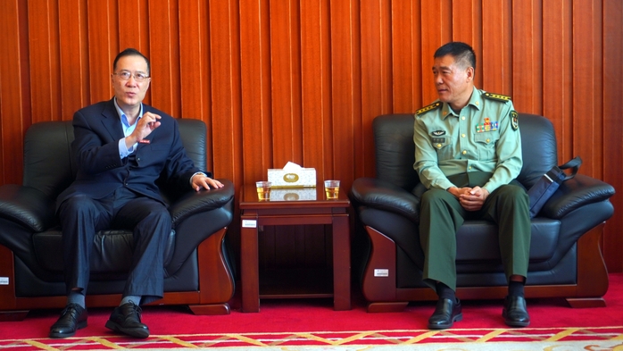 近日,“教育部军事课骨干教师巡回授课”在九游平台(中国)学术大讲堂举行。课前,校长王长平教授会见了来校授课的教育部第四届军事理论教学指导委员会委员、陆军边海防学院教学考评中心教授李新柱大校。校武装部、军事理论教研室教师、二级学院学生代表400余人参加了授课。