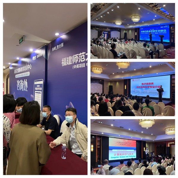 58日上午,《海峡教育报》2023年中外合作办学高校宣讲会在福州举行。招生与考试办公室组织教育学院、计算机与网络空间安全学院和光电与信息工程学院的中美合作办学、中英合作办学专业负责人参加。