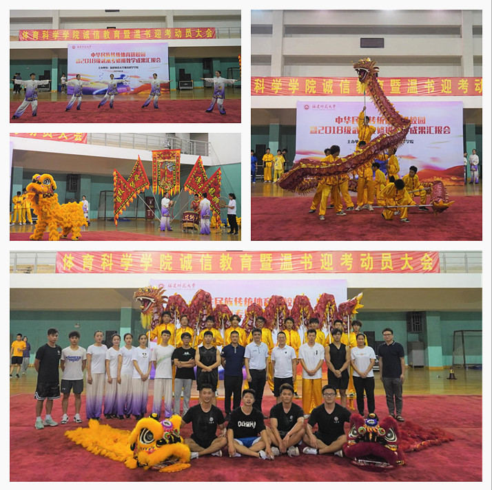 625日晚,体育科学学院在室内篮球馆举办中华传统体育进校园暨2018级武术专修班教学成果汇报会。院党委副书记钟晓波、副院长许文鑫,武术教研室老师刘祖辉、各年级辅导员,及学院全体本科生和部分研究生参加了活动。