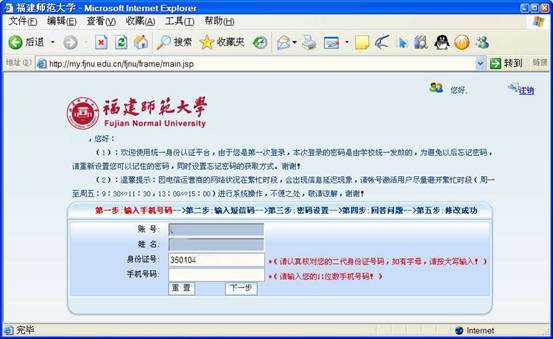 输入您的手机号码(特别提示:帐号的激活需要接收短信),点击下一步。