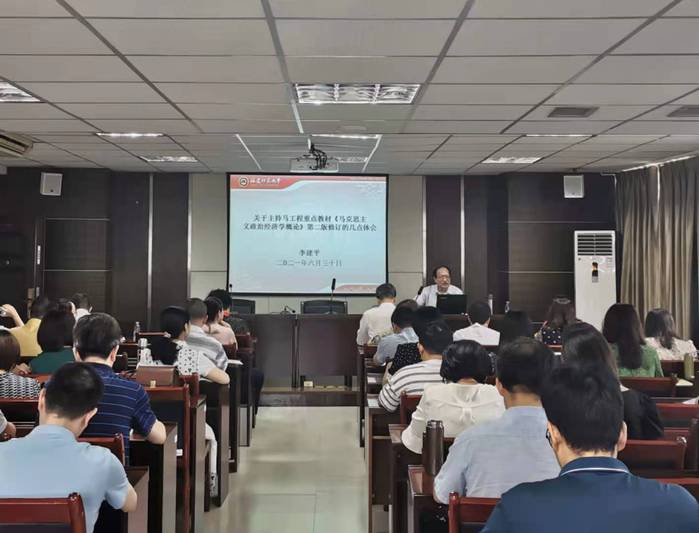 讲座中,李建平教授阐述了本次教材修订工作的时代背景和重要意义,指出这是一项具有重大意义的政治任务,受到党中央的高度重视,对教材修订的基本原则、结构内容的调整与变动作出了详细的介绍,强调要努力实现政治性、学术性和实践性的高度统一,深入分析了坚持和发展马克思主义政治经济学的重要意义。同时,李建平教授还提及了课题组专家们在一千多天修订过程中,同心合力、克服各种困难结下了深厚的战斗情谊。专家们不计个人得失、艰苦奋斗、精益求精、特别能战斗的精神感染了在座每一位老师。