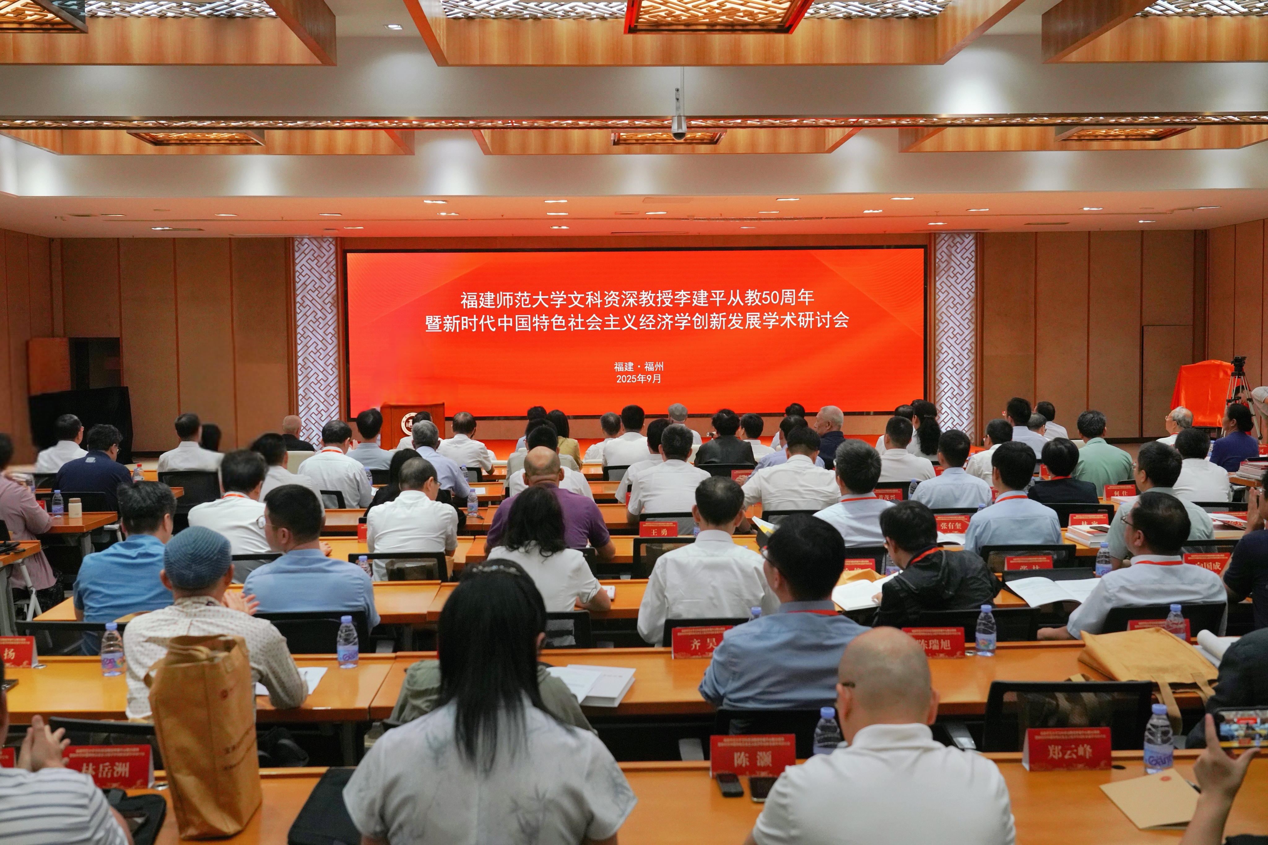 省人大常委会党组副书记、副主任陈冬,省人大常委会原党组副书记、副主任叶双瑜,中国人民大学原校长、国家一级教授、教育部高等学校经济学类专业教学指导委员会主任委员刘伟,中国社会科学院学部委员、世界政治经济学学会会长程恩富,中国人民大学国家一级教授、中国社会科学院学部委员王国刚,中国人民大学教授、中国《资本论》研究会会长张宇,上海财经大学校长刘元春,吉林大学党委副书记韩喜平,吉林财经大学原副校长丁堡骏,省委宣传部常务副部长王建南,省委教育工委委员、省教育厅党组成员、副厅长黄建顺,省社科联副主席、一级巡视员陈文章,福建社科院党组书记、副院长宋建晓等领导、专家和省直单位负责人出席开幕式。中国青年出版总社总编辑陈章乐、福建省委党史方志办主任刘大可、省退役军人事务厅厅长罗庆春、省市场监督管理局局长黄水木、省统计局局长叶飞文、泉州师范学院党委书记柯瑞清、三明学院党委书记陈列平、中国建设银行台北分行行长杨达远等30多位厅局级校友,以及省内外专家学者、各界校友代表,中央和省内媒体记者和师生代表等共180多人参加活动。校党委书记潘玉腾在开幕式上致欢迎辞,校长郑家建主持开幕式,校党委副书记陈晓红主持研讨会专家发言环节。