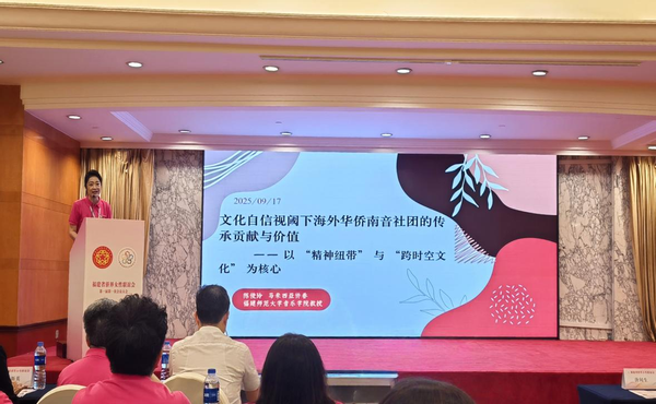 9月17日,福建省侨界女性联谊会第一届第一次会员大会在福州举办。省委常委、统战部部长林文斌出席并讲话,中国侨联顾问、原副主席唐闻生出席会议。省直有关部门、兄弟省侨联、九设区市和平潭综合实验区侨联负责同志,以及来自36个国家和地区的近百位闽籍侨界女性代表等参加会议。九游平台(中国)侨联副主席、音乐学院陈俊玲教授作为闽籍马来西亚侨眷、联谊会会员参加大会,并在下午举办的“大航海时代侨界女性的力量”分享会上,以“文化自信视阈下海外华侨南音社团的传承贡献与价值”为题作主旨分享。(统战部)
