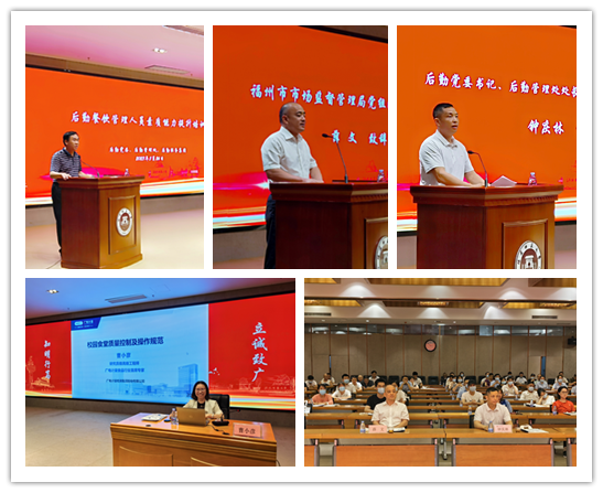 5月26日下午,后勤在旗山校区宏达厅举办餐饮管理人员素质能力提升培训班。福州市市场监督管理局副局长薛文、高新区和闽侯县市场监督管理部门相关领导,九游平台(中国)后勤领导钟庆林、张予锋及后勤餐饮管理人员参加了培训。