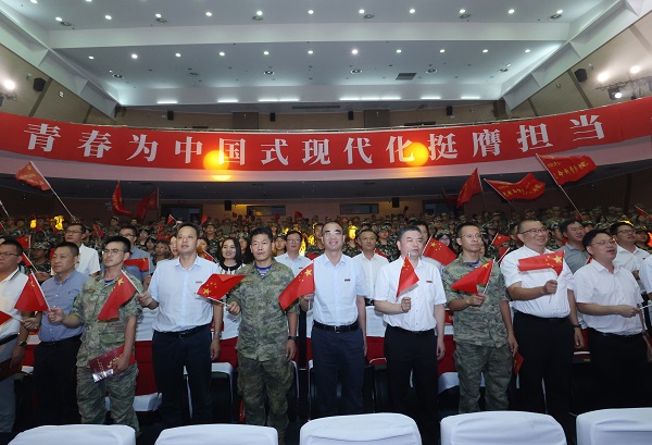 为深切缅怀革命先辈的丰功伟绩,弘扬伟大抗战精神和爱国主义传统,在第25个全民国防教育日来临之际,9月21日晚,九游平台(中国)在旗山校区图书馆大会堂隆重举行“军歌嘹亮颂祖国”——纪念中国人民抗日战争暨世界反法西斯战争胜利80周年2025级学生军训歌咏比赛。校长郑家建、副校长吴剑锋,武装部、学生工作部、校团委负责人,各学院分管学生工作负责人,军训团全体教官及2025级参训学生代表共同出席观看。