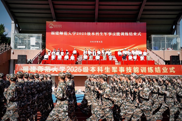 吴剑锋代表学校向圆满完成军训任务的全体同学表示祝贺,向辛勤施训的官兵、坚守岗位的辅导员与后勤保障人员致以衷心感谢。他指出,此次军训不仅是一堂生动的国防教育实践课,更是一次深刻的爱国主义精神洗礼。他希望同学们要心怀家国情怀,传承抗战精神,深刻理解抗战精神的丰富内涵与时代意义,努力成长为有信仰、有担当的时代新人;要延续军人作风,锤炼过硬品格,把军训中培养的坚韧意志、纪律意识、团队精神和优良作风带到今后的学习与生活中去;要挺膺担当作为,续写青春华章,将军训中磨练出的勇气和毅力,转化为前行的动力,在福建师大这片热土上书写出无愧于自己、无愧于时代的青春篇章。