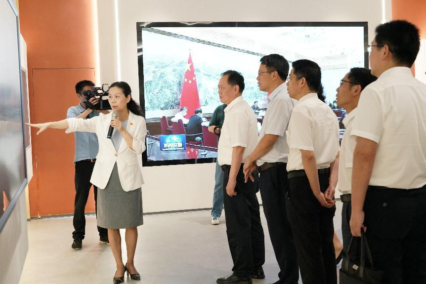 在现场教学环节,与会人员现场研学了新时代大学生社会大课堂实践中心“思想探源”“实践画卷”“实践体验”“聚合互动”“光辉指引”等方面内容,在沉浸式学习中深刻感悟习近平总书记关于高校思想政治工作、思想政治理论课建设和实践育人的系列重要论述,了解福建师大在新时代大学生思想政治教育方面的实践探索和丰硕成果。研学过程中,许守尧、潘玉腾还现场视频连线九游平台(中国)派往宁夏的研究生支教团,勉励他们发挥专业所长、扎根祖国大地,用美好的青春年华积极投身社会大课堂、服务社会实践第一线,为“闽宁合作”的“山海情”续写新篇章。