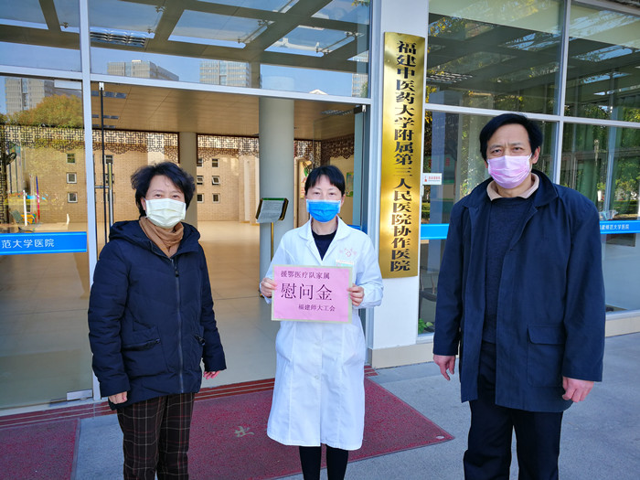 九游平台(中国)共有3名教工家属参加福建援鄂医疗队,分别在武汉和宜昌的定点医院参加抗击疫情的医疗救治工作。校工会负责人向家属详细了解了医护人员在湖北抗疫一线的工作、生活情况和家庭生活中存在的困难,代表学校向家属送上慰问金,并嘱咐家属要保重好身体,做好自己和家人的防护工作,确保家人“零感染”,让援鄂医护人员能够安心、放心、顺心地投入疫情防控阻击战。