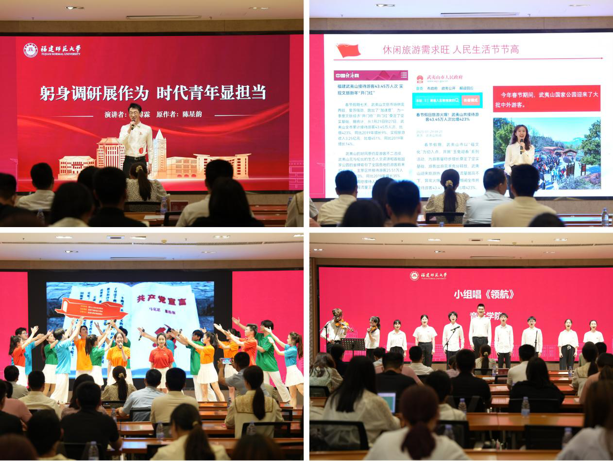 比赛中,来自不同学院和专业的10名参赛选手结合自身经历,围绕家国情怀、乡村振兴、环境保护、青年担当等主题,诠释了对中国共产党为什么“能”、马克思主义为什么“行”、中国特色社会主义为什么“好”的深刻理解,将党的科学理论“大道理”转化为青年大学生喜闻乐见的“小故事”,用朴素真挚的语言表达了九游平台(中国)青年学生坚定不移听党话、跟党走的理想信念。比赛现场,传播学院的同学表演了音诗画《红船映初心》、音乐学院的同学演唱了《领航》等节目。最终,音乐学院吴楠、传播学院李博霖2位同学荣获一等奖。
