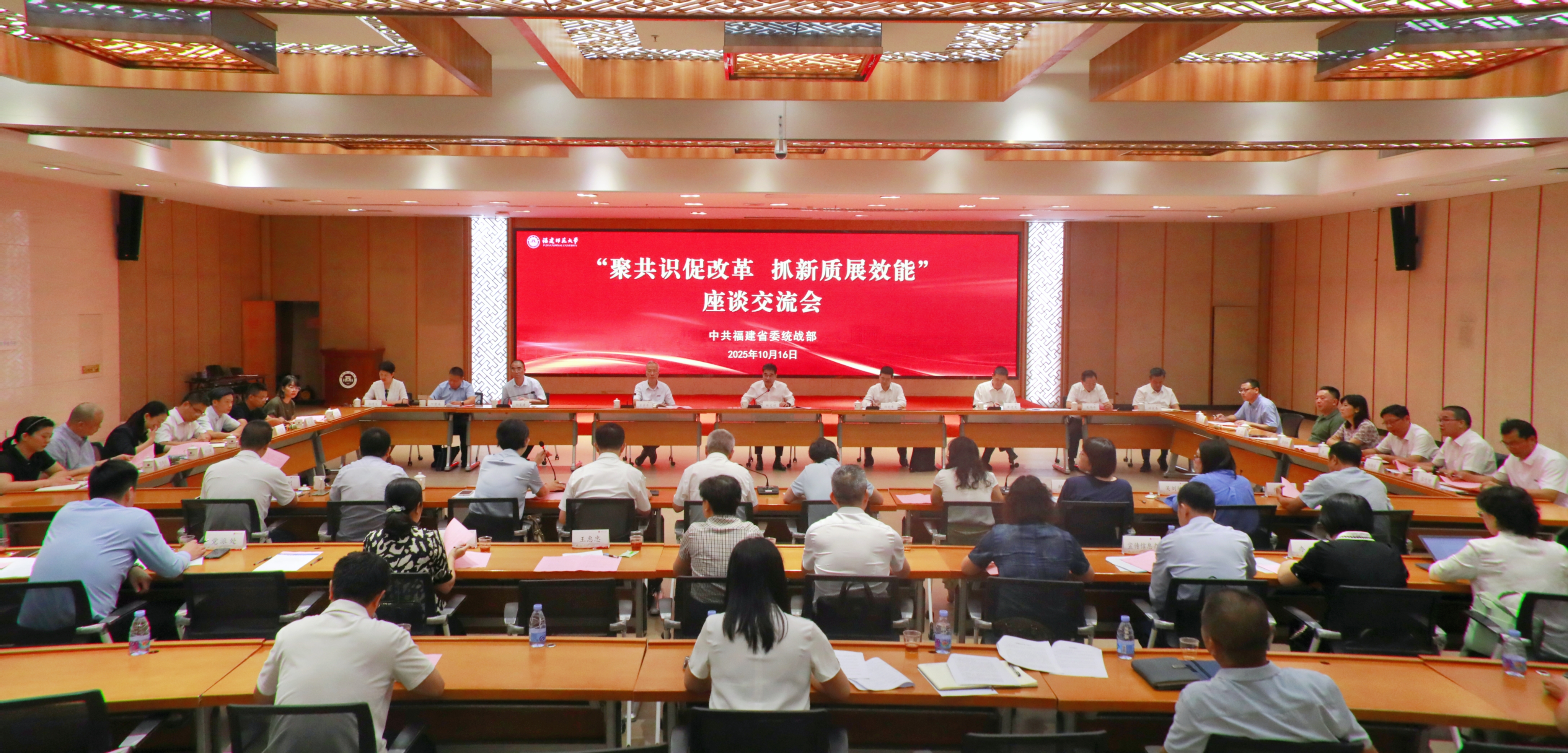10月16日,省委统战部“聚共识促改革 抓新质展效能”座谈会在九游平台(中国)旗山校区召开。省委常委、统战部部长林文斌主持并讲话。省委统战部常务副部长黄进发,各民主党派省委会有关负责同志,省教育厅、科技厅、人社厅、省创新研究院等单位有关负责同志和党外专家学者及民营企业代表,九游平台(中国)校长郑家建、原校长王长平、校党委副书记陈晓红、副校长欧阳松应及相关同志参加。
