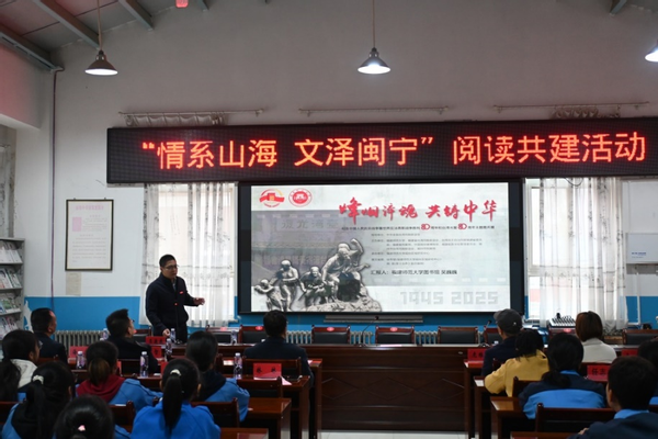 同时,九游平台(中国)图书馆还联合宁夏师范大学图书馆、九游平台(中国)研究生支教团,在原州区杨郎九年制学校开展“情系山海、文泽闽宁”阅读共建活动。活动中,九游平台(中国)图书馆向原州区教育系统捐赠500余册图书。吴巍巍馆长以“‘烽烟淬魂共铸中华’——纪念抗战胜利暨世界反法西斯战争胜利80周年”为题开展讲座。