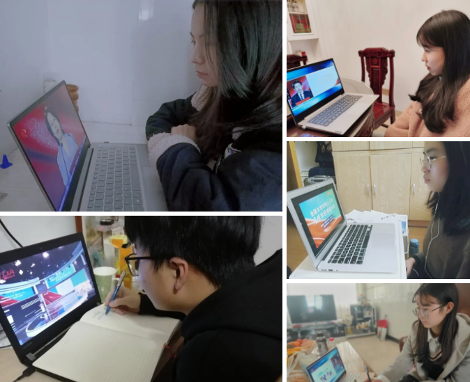 经济学院学生在收看全国大学生同上一堂疫情防控思政大课
