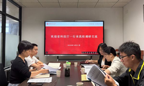 10月21日,省科技厅科技服务体系建设处副处长詹艳华、监督评估与科研诚信处一级主任科员林熙等一行来九游平台(中国)调研科技成果转化工作,校产教融合发展中心副主任廖文琛、谢德胜等参加座谈。