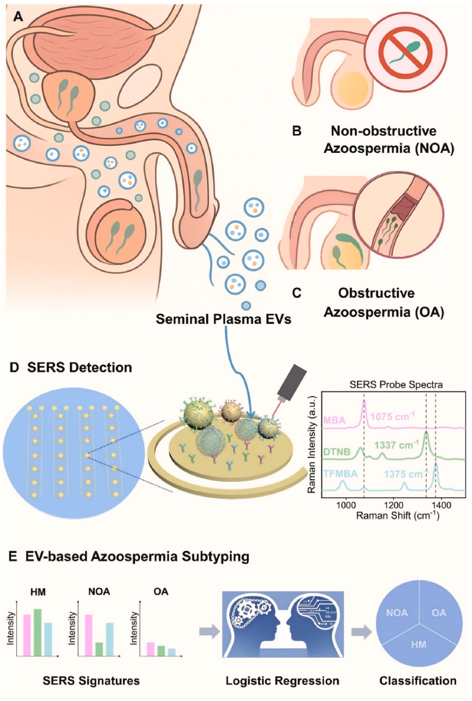 无精子症作为男性不育的主要原因,约占不育病例的10-15%,并且受环境暴露、遗传异常和生殖道疾病的影响,其患病率正在上升。临床上无精子症分为阻塞性(OA)和非阻塞性(NOA)两种类型,二者治疗方案截然不同,因此精准分型是制定有效治疗方案的关键。然而,当前临床金标准“睾丸活检”具有侵入性、采样限制以及可能产生不确定结果,亟需非侵入性、更精确的诊断替代方案。