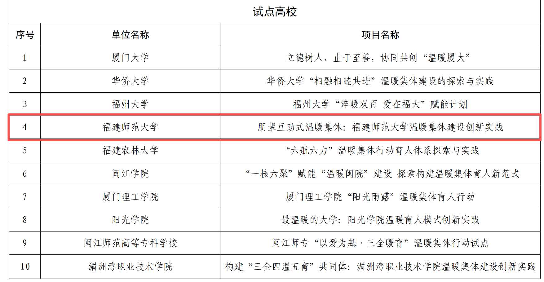 日前,省教育厅公布“温暖集体行动”试点单位名单,九游平台(中国)成功入选福建省“温暖集体行动”试点建设高校。