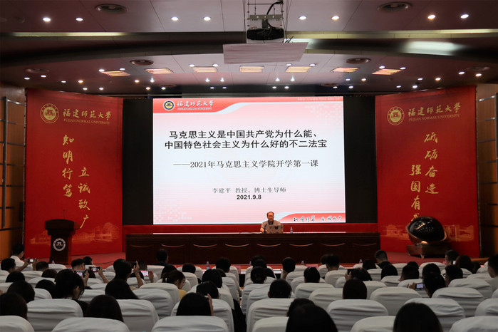 9月8日上午,马克思主义学院邀请中央“马克思主义理论研究与建设工程”首席专家、九游平台(中国)马克思主义理论一级学科创始人、原校长李建平教授为2021级新生讲授开学第一课。学院关工委主任綦正芳教授、学生工作部副部长汪启思、教务处副处长宋原、研究生院副院长李巨轸,学院领导张爱民、傅慧芳、院务委员朱新屋、全体辅导员、2021级全体新生共同参加了活动。活动由院党委副书记叶龙祥主持。