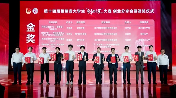 据悉,本次大赛由团省委、省教育厅、省人力资源和社会保障厅、省文化和旅游厅、省科学技术协会、省学生联合会联合主办,厦门理工学院承办,共收到全省44所高校217个参赛项目,其中67个项目进入决赛,最终评选出金奖10项、银奖20项、铜奖30项。
