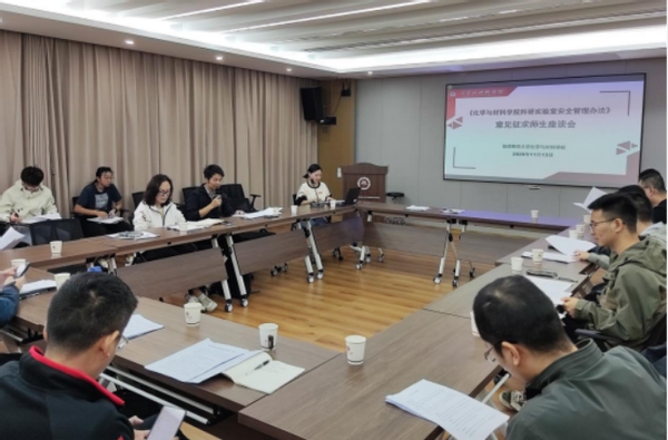 11月13日下午,化学与材料学院在科研15号楼召开科研实验室安全管理办法征求意见座谈会,副书记张娴(主持工作)、副院长章华桂、学院学科平台办相关人员和全院各课题组师生代表40余人参会。
