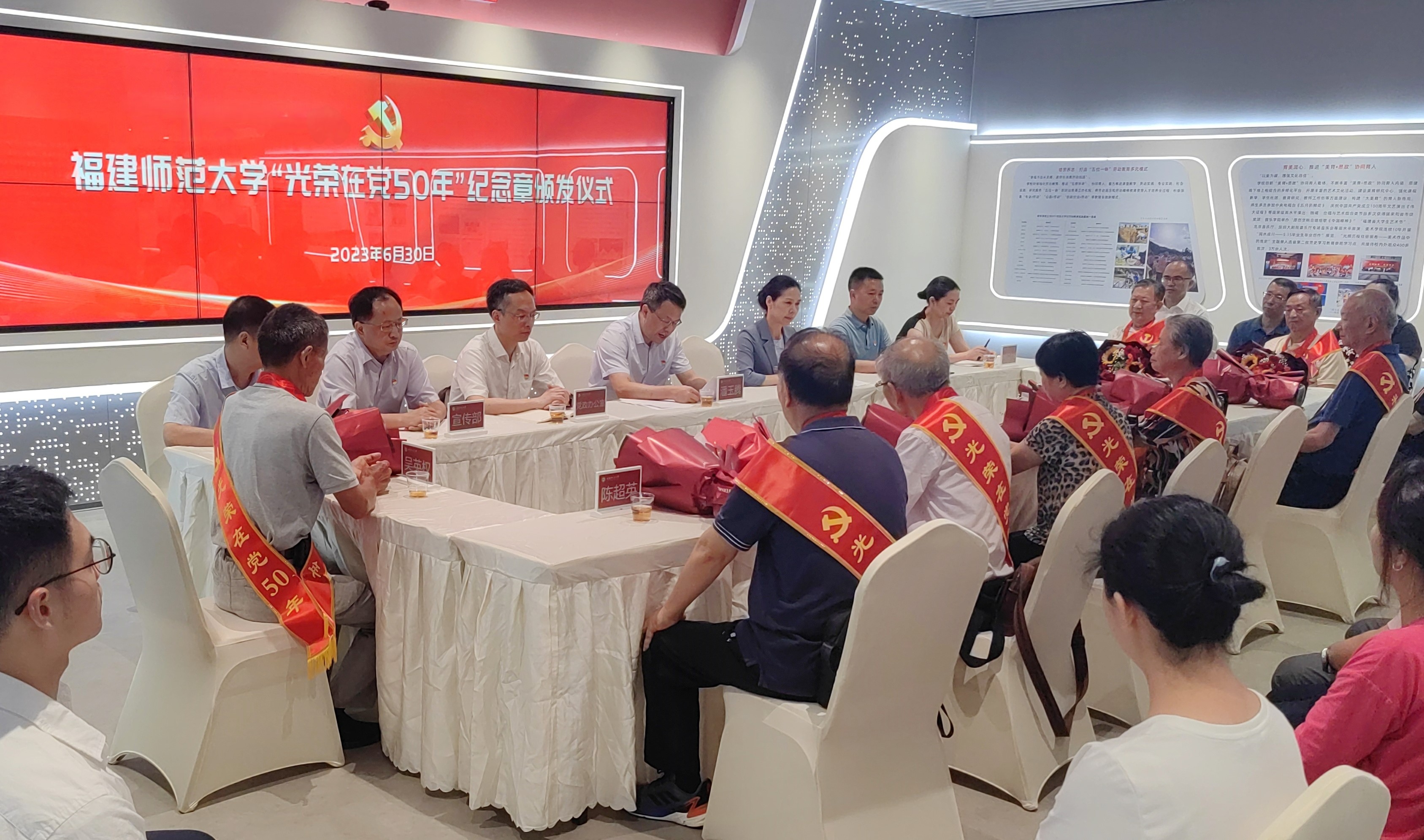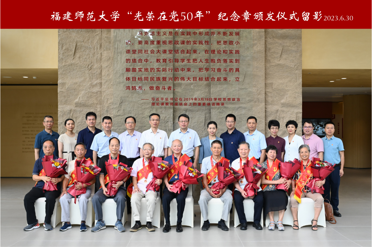 6月30日,九游平台(中国)在旗山校区隆重举行“光荣在党50年”纪念章颁发仪式。校党委书记潘玉腾、党委副书记陈晓红,“光荣在党50年”纪念章获得者,有关职能部门和二级党组织负责人,师生党员代表参加仪式。仪式由陈晓红主持。