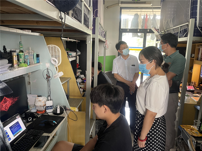 9月15日上午,教务处、学生工作部(处)负责人带队深入旗山校区学生公寓,查看学生线上学习情况。